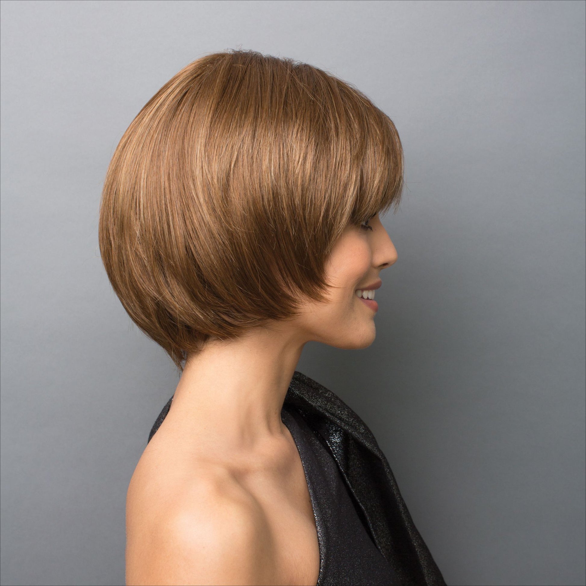 The Shannon wig by Hi Fashion is a structured chin length bob with tapered ends.